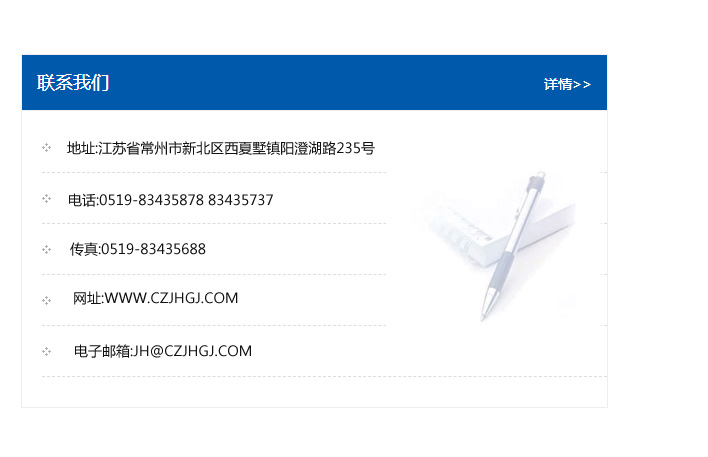 傳真:0519-83435688    郵編:213135    網址:WWW.czjhgj_com.dian578.com    電子郵箱:JH@czjhgj_com.dian578.com
